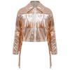 Mädchen Glänzende Jacke Metallic Quasten Detail Umlegekragen Langarm Reißverschluss Tanzparty Oberteil