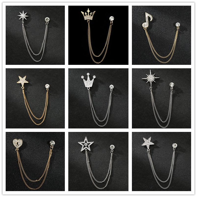 Herrenanzug-Reversnadel-Set im koreanischen Stil mit Kronenbrosche, Kette und Stern-Korsage