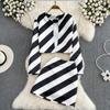 Autumn Fashion Suit Women's Round Neck Short Striped Shirt Two-Piece High Waist Bag Hip Skirt