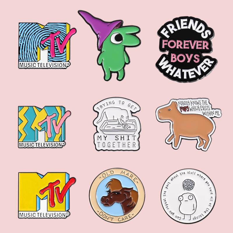 Niedliches tierförmiges Metallabzeichen-Set mit lustigen englischen Buchstaben