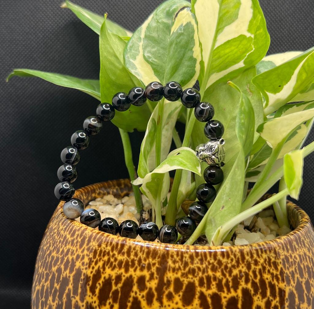 Produktname Schwarzer Achat Armband mit Tigerkopf Anhänger