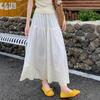 Qooth Women A Line Embroidery Flower Ruffle Skirt Wide Hem Mid Length Elastic Waist Casual Skirt QT2668