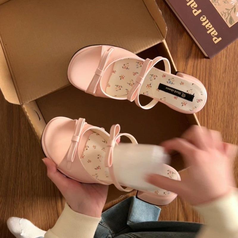 Halbschleife dicker Absatz Taschenkopf Hausschuhe Damen Oberbekleidung Sommer neu süß vielseitig floral Mode Sandalen