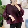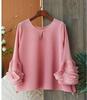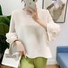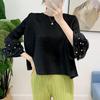Damen Plissee Oberteil mit ausgestellten Ärmeln und Perlen-Rundhalsausschnitt