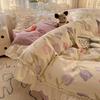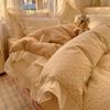 French Lace Bed Four-piece Set Pure Cotton Skin-friendly Comfortable Breathable Washed Bed Sheet Quilt Cover Pillowcase