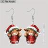 2D Flache Highland-Kuh Weihnachts-Ohrringe für Damen, Acryl Highland-Kuh mit Weihnachtsmütze Hängeohrringe, Leichte Ohrringe, Kuh Weihnachtsgeschenk