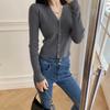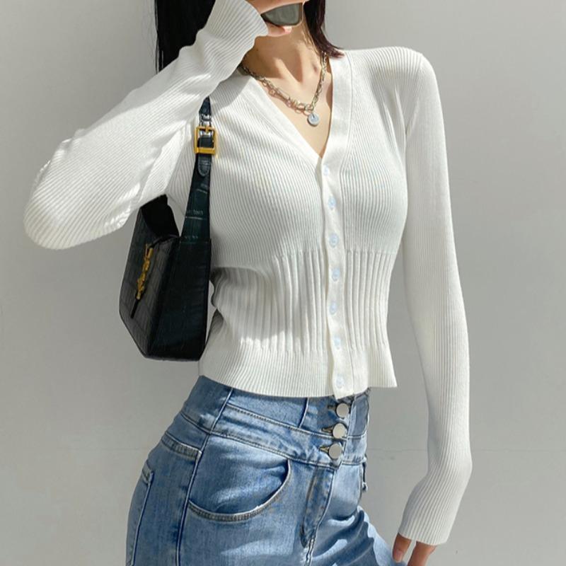Frühling Herbst einfarbig Gestrickter Pullover Kurze Strickjacke Jacke Slim V-Ausschnitt Ausländischer Stil Mode einfarbige Pullover für Damen Kleidung