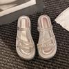 Dicke Sohle, coole Hausschuhe für Damen zum Tragen im Sommer, neue Strass-Muffin-vielseitige kleine Ein-Wort-Strandhausschuhe für Damen