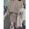 Herbst Winter Twist Elegant Damen Strickpullover Kleid Retro Lässig Locker Langarm Rundhals Pullover Kurze Kleider Büro Neue Slim Fit Kleidung
