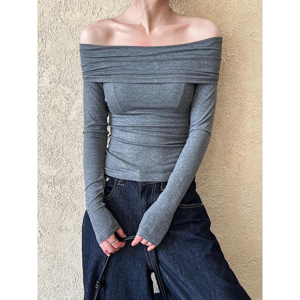 Luxi Pure Desire Hot Girl Off-Shoulder Slim-Fit Langarm-T-Shirt