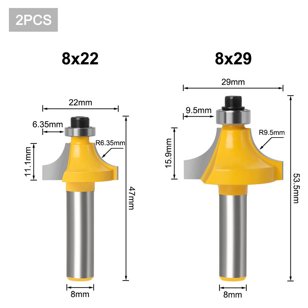 2-Piece Set Of 8-Handle Woodworking Rounded Corner Cutter Inverted R-Angle Milling Cutter Trimming Corner Milling Cutter R-Angle Cutter