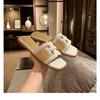 Schaffellversion von echtem Leder quadratischer Kopf Strohflechtung coole Hausschuhe Damen Sommer gewebt Strand Ein-Wort-Hausschuhe tragen halbe Hausschuhe