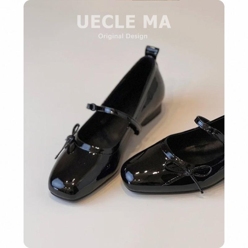 Lammleder~ Einzelne Schuhe Damen flache Schleife Ballerinas flacher Ausschnitt Abendschuhe schwarz Retro Mary Jane Schuhe