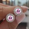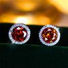 Luxury Male Female Crystal Purple Blue Green Round Stud Earrings Silver Color Wedding Jewelry For Women Men