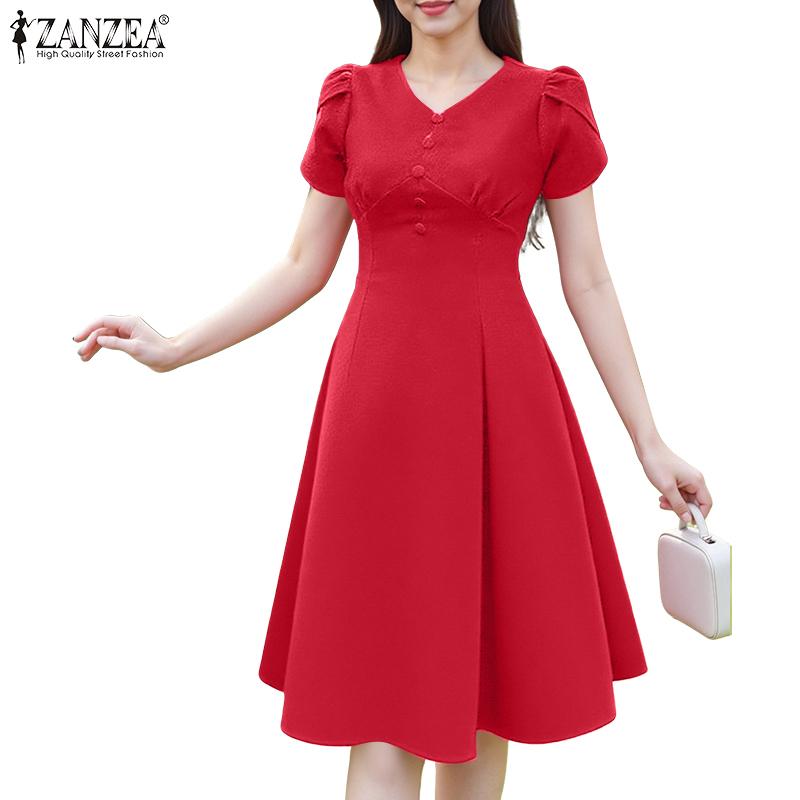 ZANZEA Women Casual V-Neck Short Sleeve Summer Dress