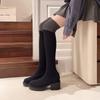 Foreign trade new spring and autumn elastic thin boots over the knee long boots women's elastic boots thick heel knitted socks boots are thin and ver