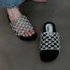 Schafsfell-Version~ Handgewebtes Fischernetz Hohl Dicksohlige Strandschuhe Damen Weiches Leder Vielseitig Lässig Runde Spitze Offene Zehen Sandalen