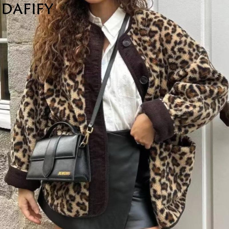 DAFIFY Damenmode Lässig Leopardenmuster Herbst Winter Langarm V-Ausschnitt Jacken & Mäntel