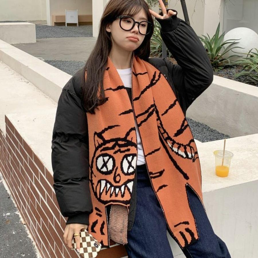 Koreanischer Wollstrickschal Niedlicher Katzenschal Pashmina Schal Damen Winterschal Warmer Foulard Schal für Damen