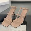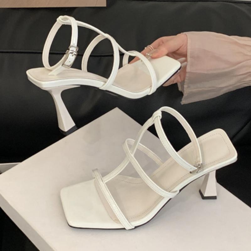 Sommer 2025 Schmaler Riemen Schnalle Designer Sandalen Damen Sexy Quadratische Zehen Offene Zehen Dünner Absatz Pumps Lässig Strand Marken Pantoletten Weiblich