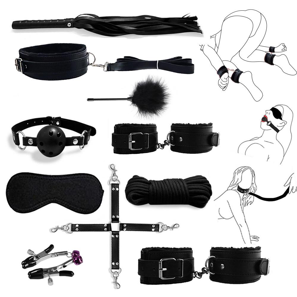 Handschellen Fesselung Bondage Ausrüstung Erwachsen Erotische Spiele 10-teiliges Sexspielzeug Set Bein Fessel Manschette Knebel Mund Nippelklemme Flirt Teaser