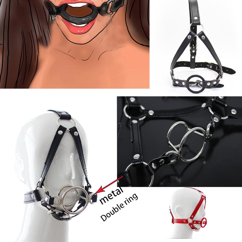 PU Leder Kopfband O-Ring Mundknebel Metallring Offener Mund Fixierung für Frau Sklavin Bondage Fetisch SM Paar Spielzeug Sexspielzeug