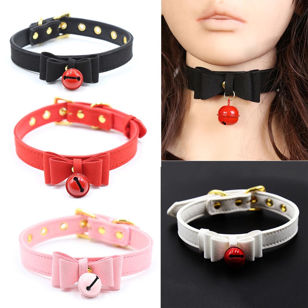 Manyjoy Handmade Sexy PU Leather Bow Tied Collar Bell Choker Slave Costume Bondage Necklace Neckband Sex Toys Accessory