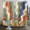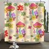Vintage Regenbogen Pilz Duschvorhang Lustig 70er 80er Retro Trippy Abstrakt Boho Floral Hippie Wasserdichter Badezimmervorhang Dekor