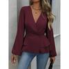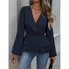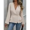Damen einfarbiges doppelreihiges langärmliges Oberteil mit elegantem V-Ausschnitt und plissiertem Design, geeignet für Dates und Arbeit, kombiniert