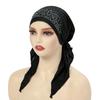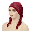 Neue Gebogene Strass Elastische Hijab Mütze mit Einfarbiger Indischer Kopftuch Stil