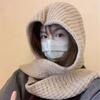 Damen Herbst Winter Verdickte Warme Wollmischung Mütze und Schal Integrierte Strickmütze mit Schal