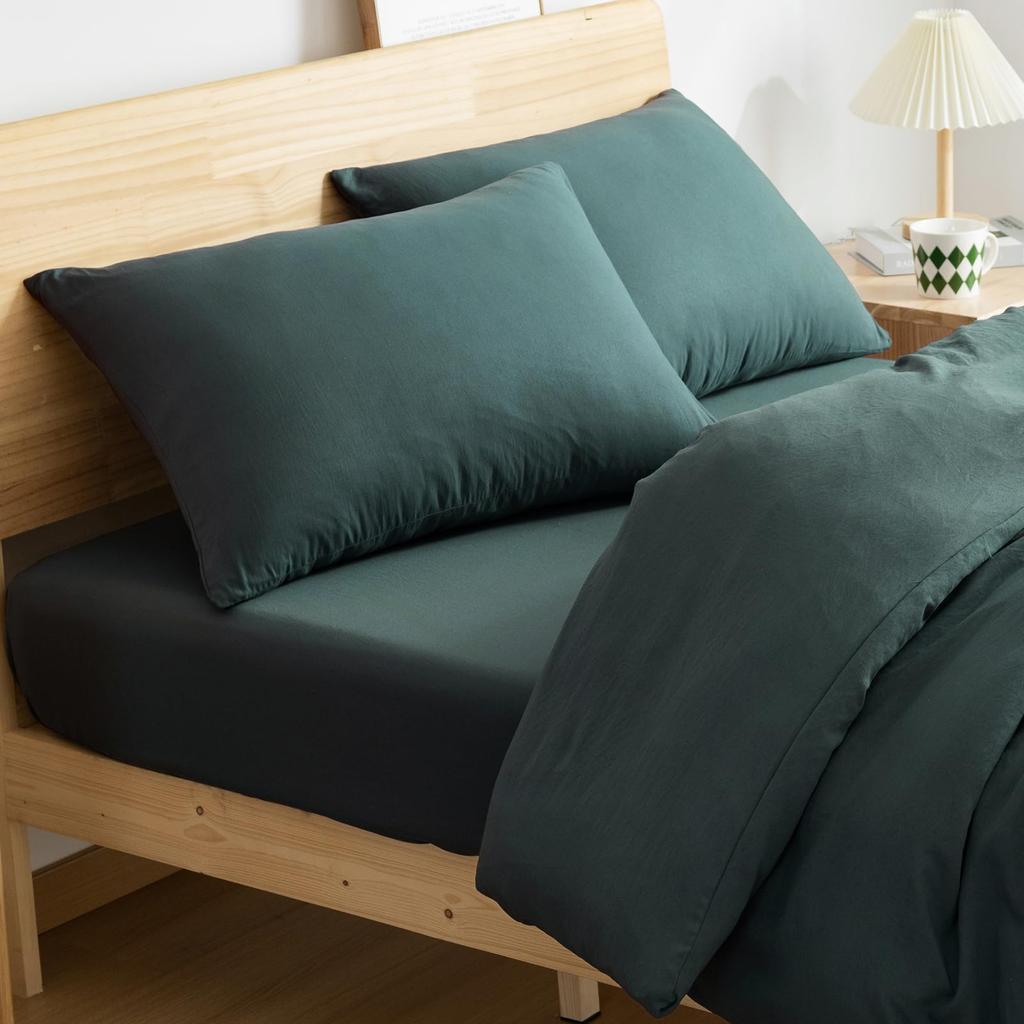 [Bedding Cover Set Contents and Specifications] 1. Duvet Cover, 190x210cm (1 piece): Features a sturdy 210cm zipper on one side and eight futon tie ties. 2. Fitted Sheet, 140x200+30cm (1 piece): Features elastic all around to prevent slippage, and can cover a futon and mattress up to a height of 3-28cm. 3. Pillowcases, 45x65cm (2 pieces): Features zippers for easy insertion and removal. *Please note that the size may be slightly smaller than stated (quilted product tolerance +5%-3%). Made from 100% polyester with a "washed" finish, it becomes softer and more comfortable against the skin with each wash and use.