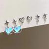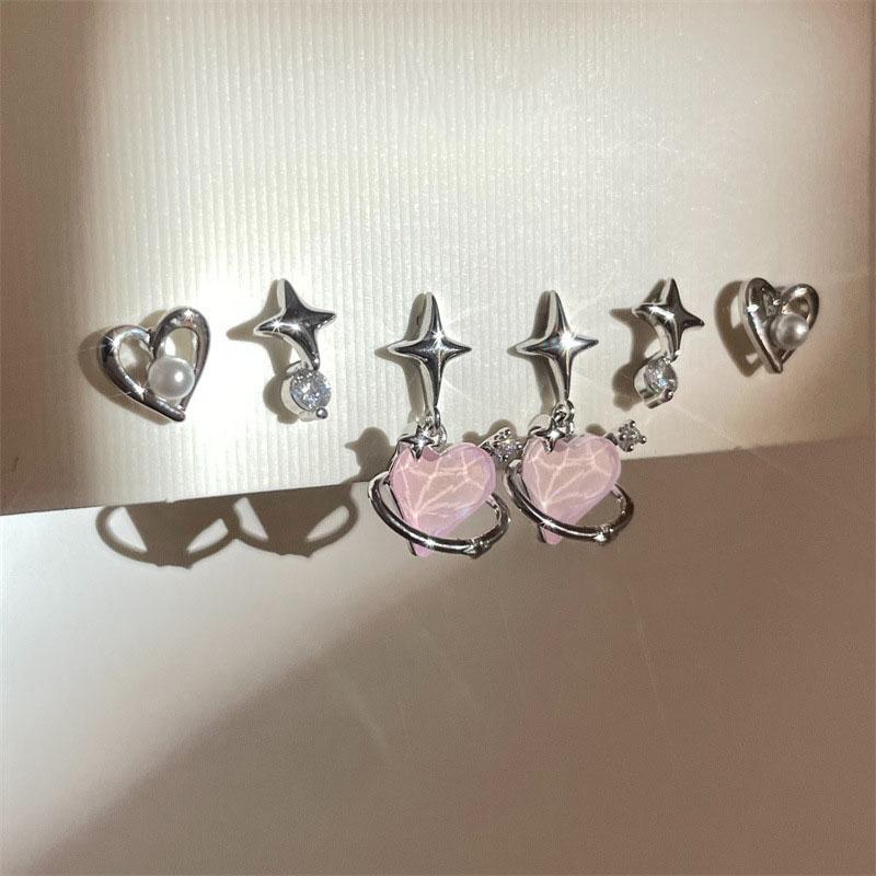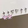 6Pcs Pink Heart Stud Earrings Set Women's Personality Korean Fashion Y2K Pink Crystal Temperament Star Earring Piercing for Ears