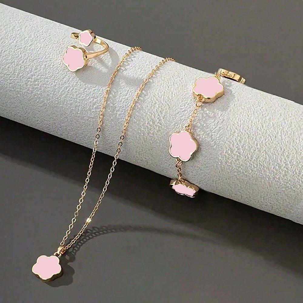 3pcs Women Zircon Set Fashionable And Elegant Flower Shaped Necklace, Bracelet, Ring,Accessories, suitable for daily matching