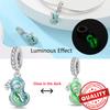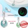 Original 925 Sterling Kupfer Leuchtend im Dunkeln Grüner Zirkon Herz Schmetterling & Drehkugel Anhänger Charm Passend für Original Armband
