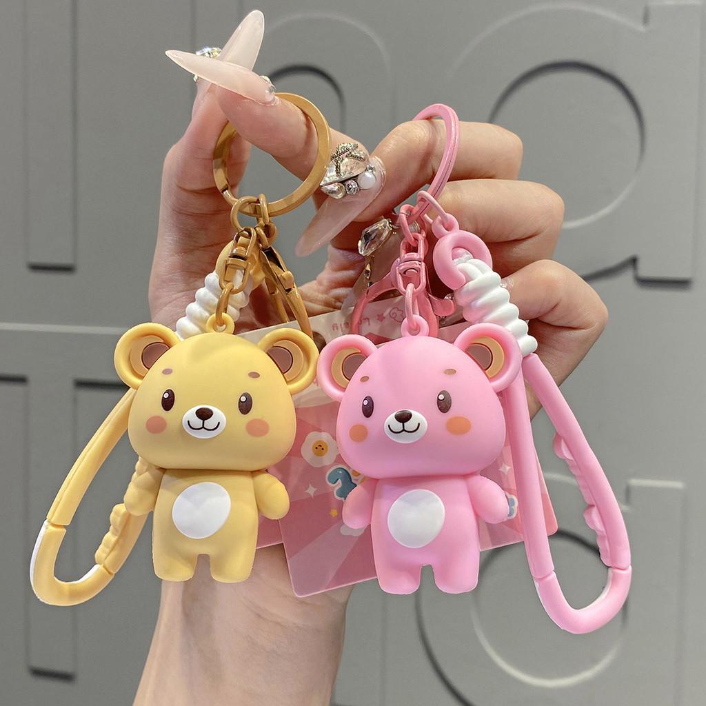 Introducing the Charming PVC Bear Keychain, an adorable bag charm that is designed to bring a smile to your face and warmth to your heart. Available in a variety of delightful styles including the Khaki Smiling Bear, Khaki Silly Bear, Pink Smiling Bear, and Pink Silly Bear, this keychain is the perfect accessory to add a touch of personality to your keys, bags, or backpacks. Crafted from high-quality PVC and hardware, this charming cartoon bear is not only cute but also durable, ensuring it remains a steadfast companion for years to come.