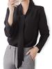 Wir stellen eine langärmlige Bluse vor, die es Ihnen ermöglicht, einen anspruchsvollen und raffinierten Look zu kreieren.. Die entspannte Silhouette betont Ihre Weiblichkeit und ermöglicht Ihnen, einen raffinierten Look zu genießen.. Der Flaschenhalsausschnitt erzeugt einen schlankmachenden Effekt um das Gesicht, lässt den Hals länger erscheinen und schafft eine zarte Silhouette.. Die voluminöse Schleife am Kragen fügt einen stilvollen Akzent hinzu und lässt das Gesicht auch kleiner erscheinen.. Die goldenen Knöpfe im Nackenbereich setzen einen Akzent auf das schlichte Design, und der Schlitz auf der Rückseite erleichtert das An- und Ausziehen.
