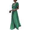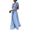 2022 Europäisches Damenkleid mit Flatterärmeln, V-Ausschnitt und rückenfrei