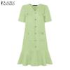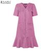 ZANZEA Damen Kurzarm Elegant Textur Büro Plissee Kleid