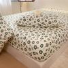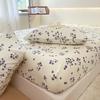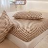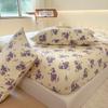 Washed Cotton Bed Sheet Fitted Sheet with Pillowcase Elastic Bands Non Slip Adjustable Mattress Cover for Double King Queen Bed
