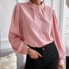 Neues elegantes einfarbiges Revers-Damen-Freizeitshirt, modische langärmelige einreihige Knopfleiste, lockere Damenbluse