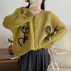 Herbst Winter einreihiger Strickpullover Kurze Strickjacke Jacke Locker Rundhals koreanische Mode Blumenpullover Jugend Frauen