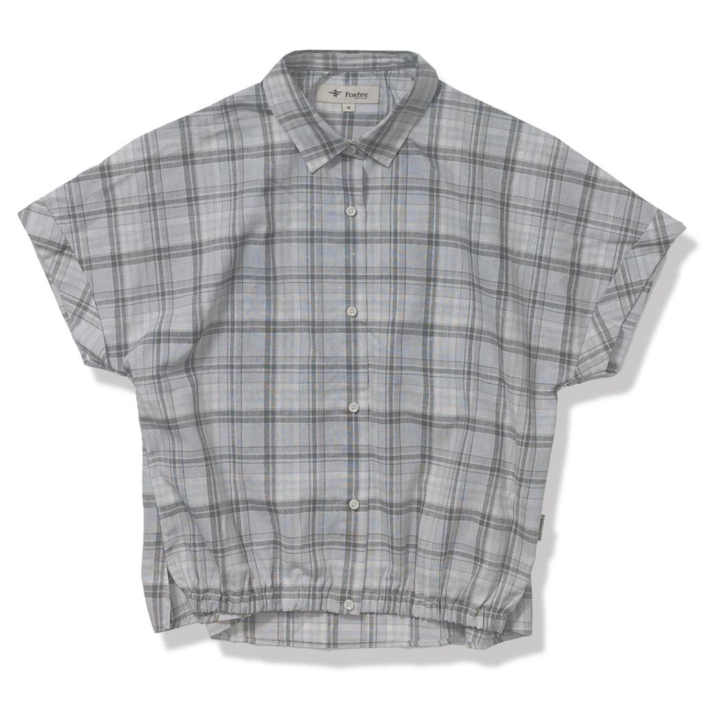A short-sleeved shirt made from a blend of linen and polyester yarn for excellent breathability and quick-drying properties. The natural texture and band collar create a refreshing feel. A comfortable fit design with a relaxed silhouette and gathers at the front hem and back. Weight: 160g