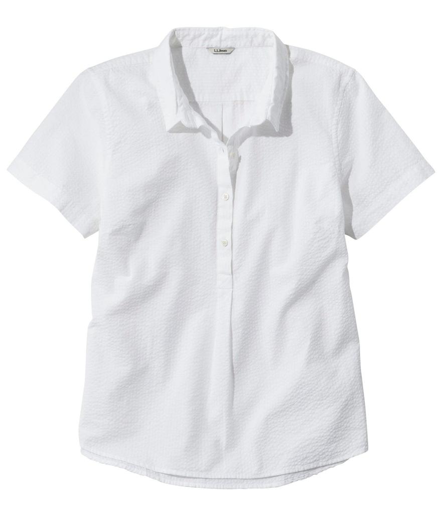 Product Information: This seersucker shirt is perfect for hotter weather, with a textured fabric that promotes air circulation and minimizes contact with the skin. It comes in a striped pullover style with a special wash for a soft finish. It has a relaxed fit throughout. The long button-down placket has pleats underneath for an accent. The hem is curved and features slits on both sides.