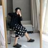 Pencil Skirt Women's Fashionable Polka Dot Knitted Midi Skirt High Waist Slim-Fitting Thickened Slit Skirt
