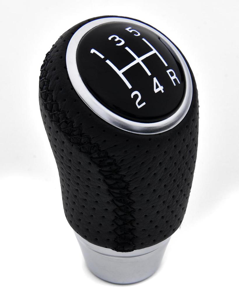 Jimny Sierra Schaltknauf für Schaltgetriebe in Klavierlackschwarz mit perforiertem schwarzem Leder und Euro-Naht JB64-74