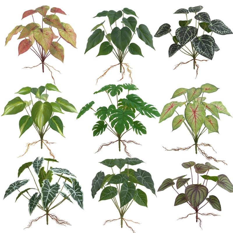 This artificial plant arrangement features high-fidelity green foliage, including varieties such as turtleback leaves, green and red-heart variegated plants, and water crystal flowers. Made from durable materials, providing a lush, realistic appearance.
