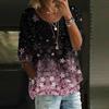 Damen Casual Mode Dreiviertelarm Locker Rundhals Floral Bedrucktes Oberteil