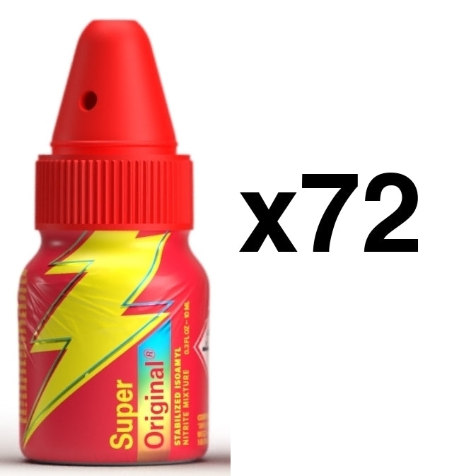 L'arôme SUPER ORIGINAL 10 ml est conçu dans sa version Petit format, pratique et efficace. Il s'emmène partout et permet de s'amuser. Et en plus, un bouchon diffuseur est fourni ! Les effets sont intenses grâce à une sensation de montée de chaleur progressive. À base de nitrite d'amyle. Pack de 72Précautions d'utilisation : Produit inflammable - ne pas mettre en contact avec une source de chaleur Ne pas ingérer Éviter le contact avec la peau, les yeux et les muqueuses En cas de problèmes, contacter un médecin ou appeler le centre anti-poison le plus proche Tenir hors de portée des mineurs Conserver dans un endroit frais et ventilé Ne pas utiliser avec des stimulants érectiles ni en cas de problèmes cardiaques, vasculaires ou d'insuffisance respiratoire Composition : Amyl Nitrite (CAS 110-46-3), 1-Butanol,3-Methyl (CAS 123-51-3).