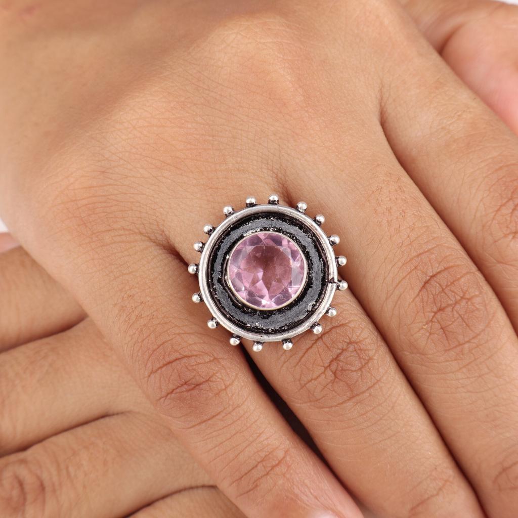 Morganite Gemstone 925 Sterling Silver Jewelry Handmade Ring For Birthday Gift